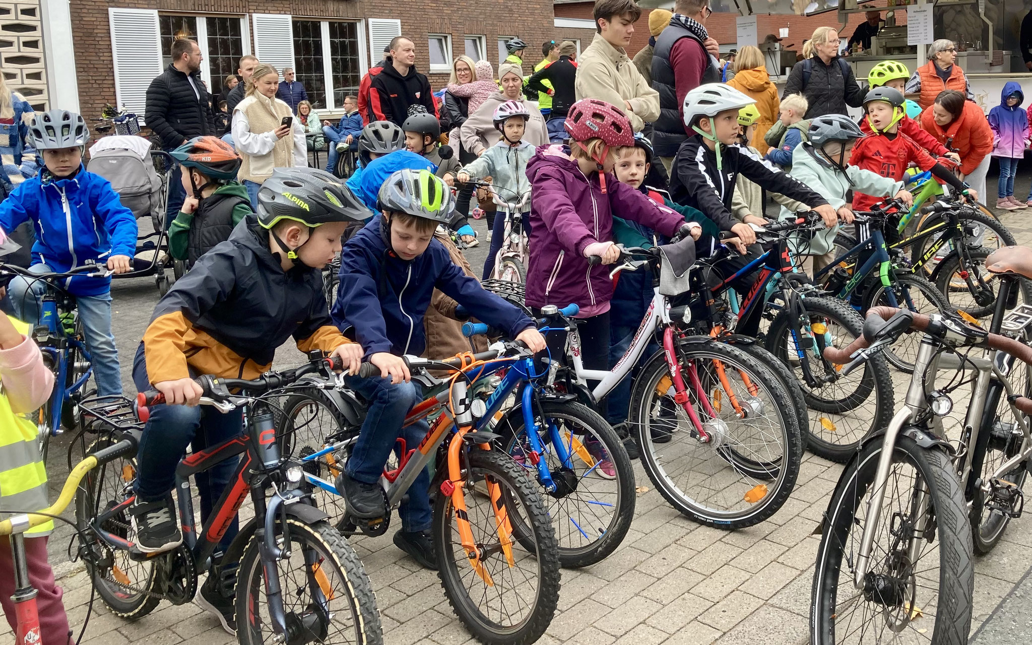 Kein Monatsabschluss, aber aus aktuellem Anlass ein Treffen zur Monatsmitte: Heute trafen sich alle Kinder und Lehrer im Lambertushaus, wo Frau Lutterbeck auf die Mobilitätswoche hinwies, die morgen beginnt. Sie motivierte die Kinder, möglichst viele Wege zu Fuß, dem Fahrrad, Roller oder Bus zu absolvieren.